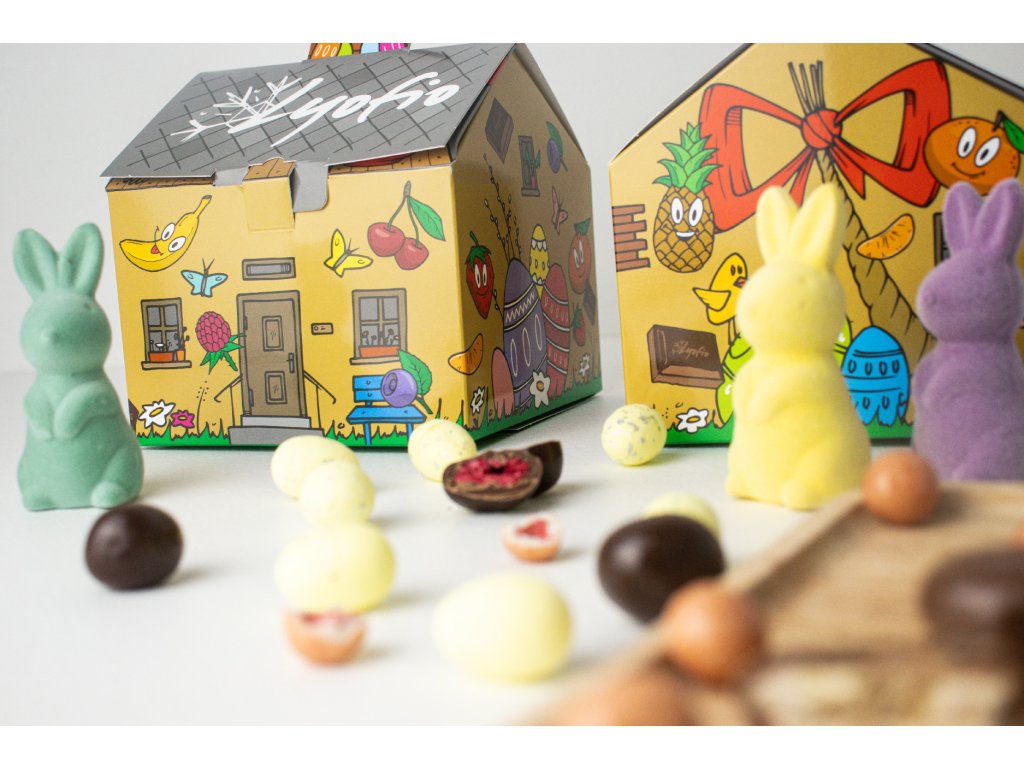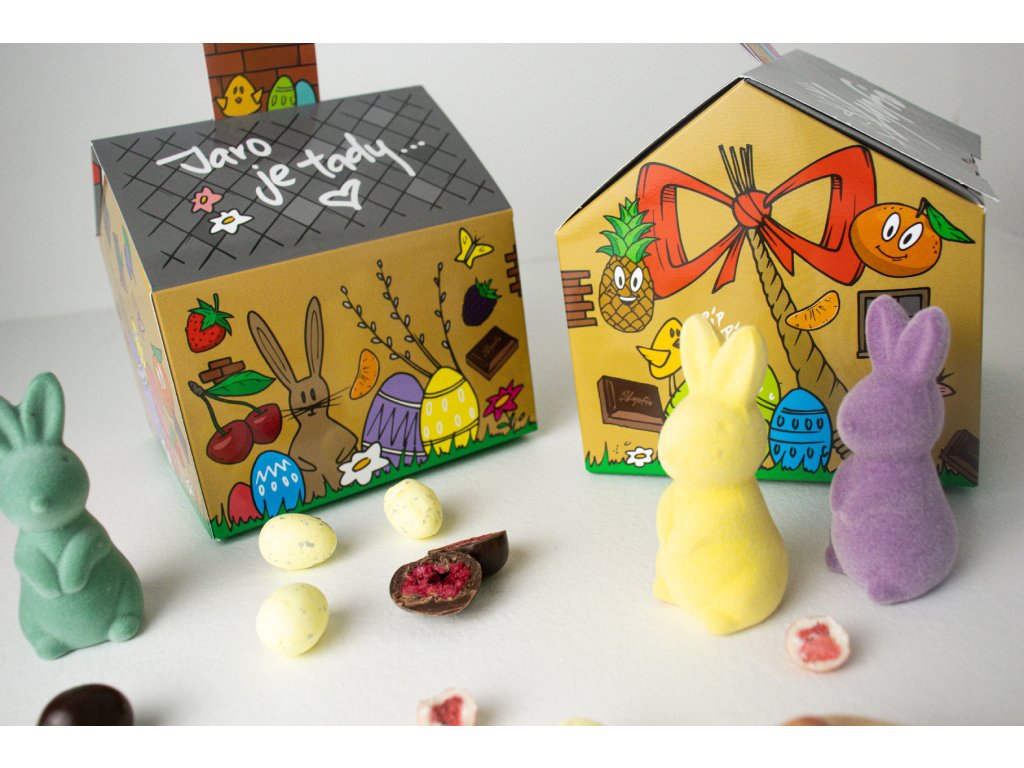 Dárkový domeček Velikonoce – mix lyofilizovaného ovoce v čokoládě 400 g