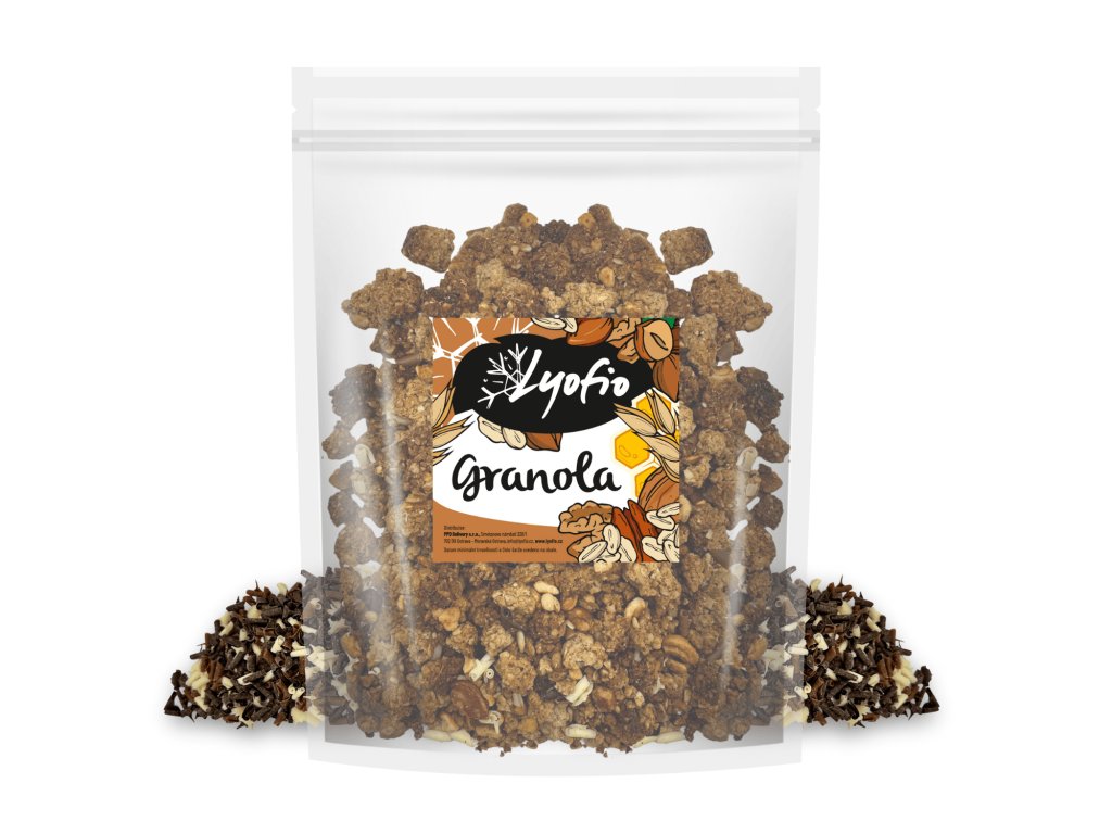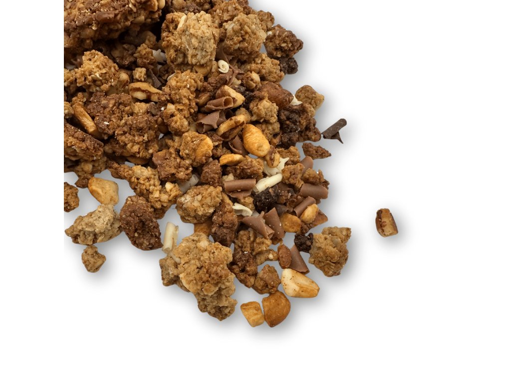 Tahle granola je sen všech čokoholiků. V každém soustu se potkává jemnost bílé, sladkost mléčné a hořkost kvalitní tmavé čokolády. Dohromady tvoří dokonale vyváženou kombinaci – potěší chuťové buňky a nastartuje ráno přívalem energie.