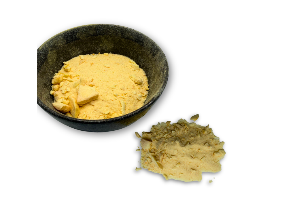 Jablečný prášek se zlomky pořídíte za výhodnější cenu než celé plátky mrazem sušených jablek. Využijete ho všude, kde tolik nezáleží na vzhledu a nepotřebujete křupat celé kousky.