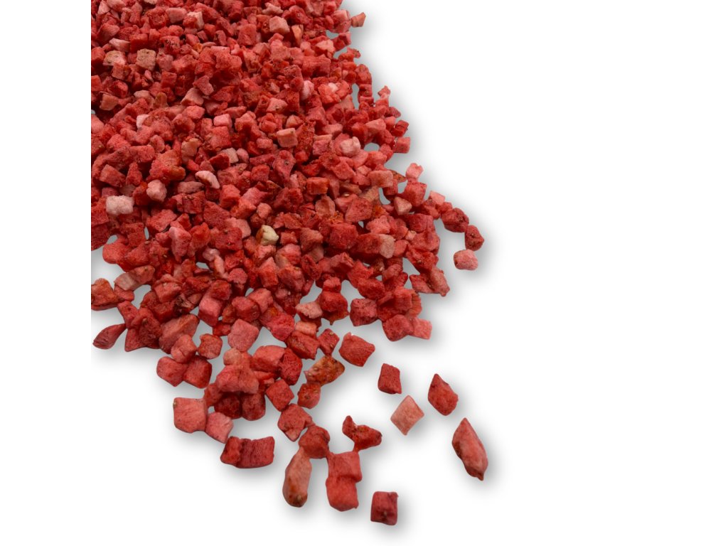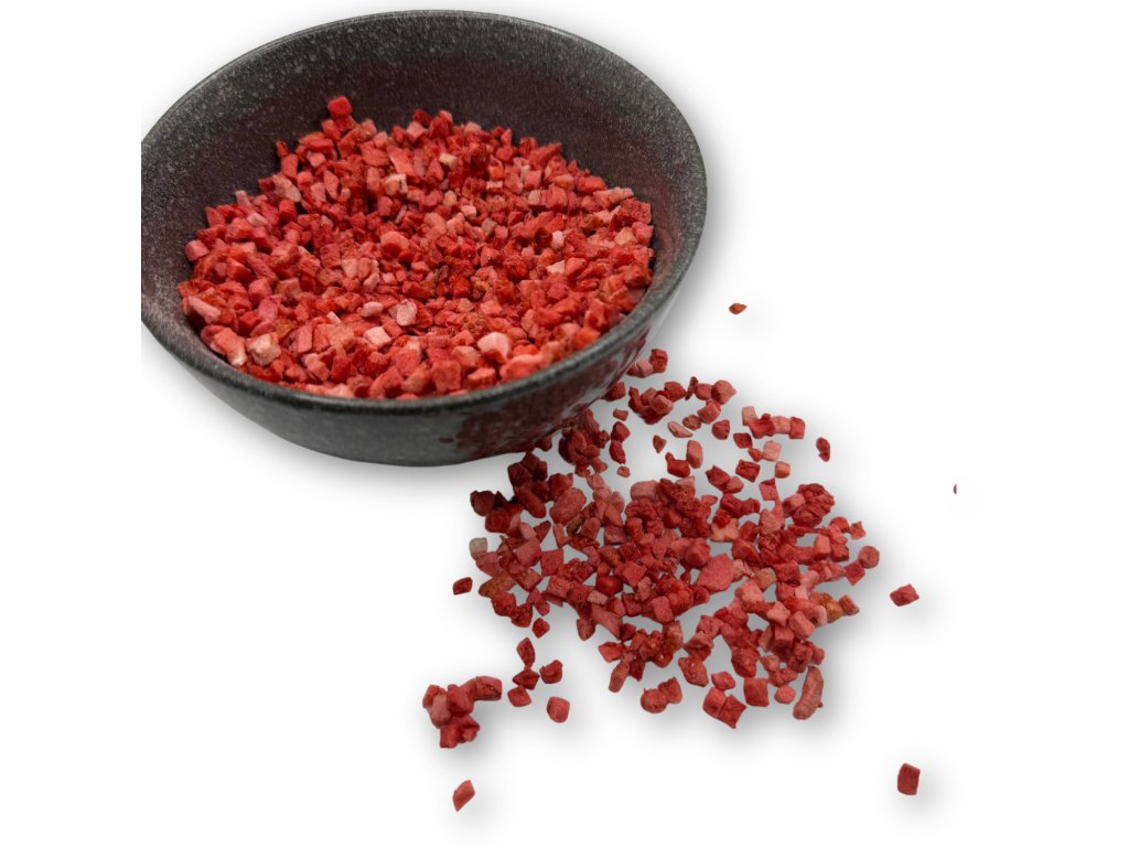 Lyofilizované jahodové kostičky mají báječnou ovocnou chuť a křupavost, jako ji znáte od celých lyofilizovaných jahod nebo plátků. Stejně tak mají spoustu vitamínů, minerálů a vlákniny a voní jako čerstvě utržené jahody ze zahrádky.