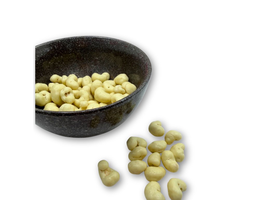 Jogurtová poleva dodá kešu oříškům nečekanou lehkost – není přehnaně sladká, ale příjemně mléčná a hladká. Kešu oříšky tak vyniknou svojí krémovou chutí, která se s polevou krásně propojí.