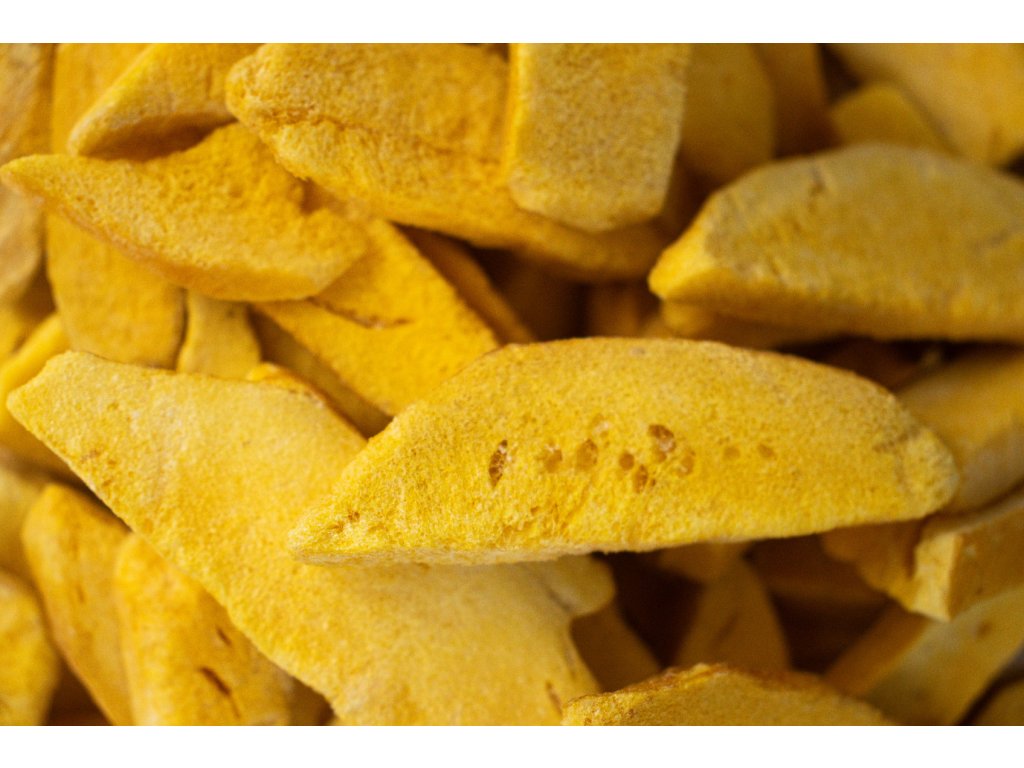 Odteď už budete mít dostatek mrazem sušeného manga na všechno: do snídaně, na pečení, do smoothie i mlsání u televize. Velké plátky vás potěší intenzivní chutí a barvou zralého manga – bez jediné kapky umělých přísad.