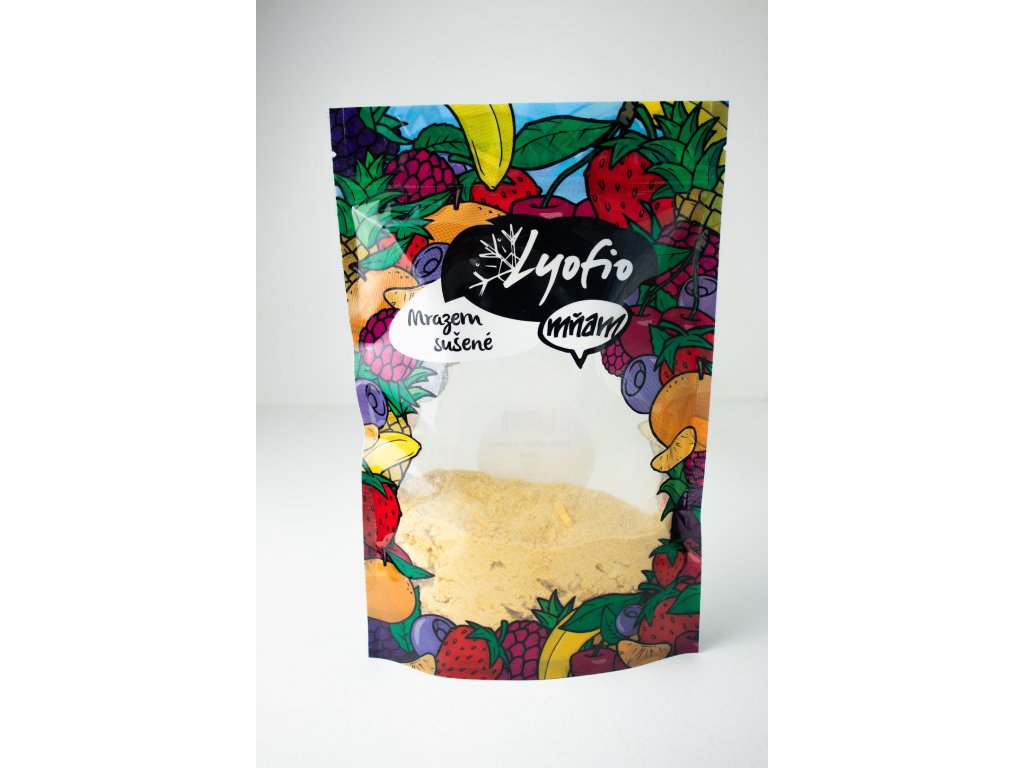 Mangový prášek neobsahuje žádné příměsi, jen 100 % lyofilizovaného ovoce. Proto potěší nejen báječnou chutí, ale také obsahem prospěšných látek. Při sušení mrazem ovoce neztratí téměř žádné vitamíny, minerály ani vlákninu.