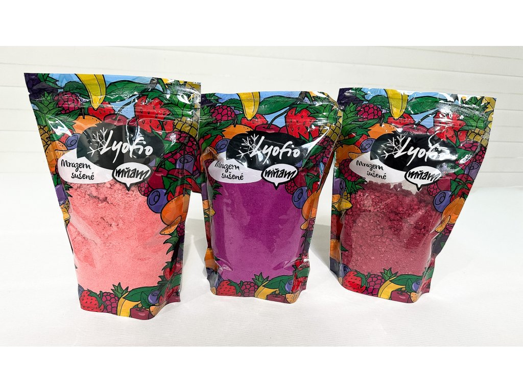Lyofilizace neboli sušení mrazem probíhá za velmi nízké teploty a tlaku. Tak dochází k sublimaci – voda přechází z pevného přímo do plynného skupenství. Díky tomu se z ovoce odpaří jen voda, aniž by sušení negativně ovlivnilo jeho nutriční hodnoty. Lyofilizované ovoce takřka neztratí živiny, vitamíny ani minerály. Navíc si zachová přirozenou chuť, vůni i barvu, a tak je téměř k nerozeznání od čerstvého ovoce.
