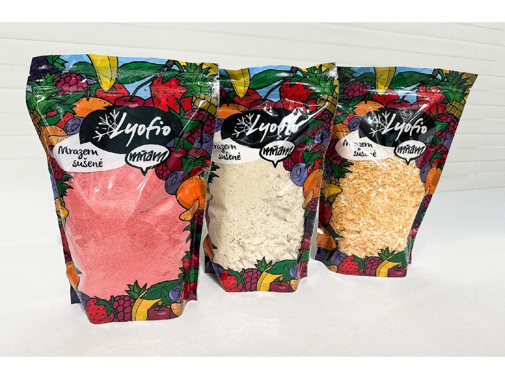 Lyofilizace neboli sušení mrazem probíhá za velmi nízké teploty a tlaku. Tak dochází k sublimaci – voda přechází z pevného přímo do plynného skupenství. Díky tomu se z ovoce odpaří jen voda, aniž by sušení negativně ovlivnilo jeho nutriční hodnoty. Lyofilizované ovoce takřka neztratí živiny, vitamíny ani minerály. Navíc si zachová přirozenou chuť, vůni i barvu, a tak je téměř k nerozeznání od čerstvého ovoce.