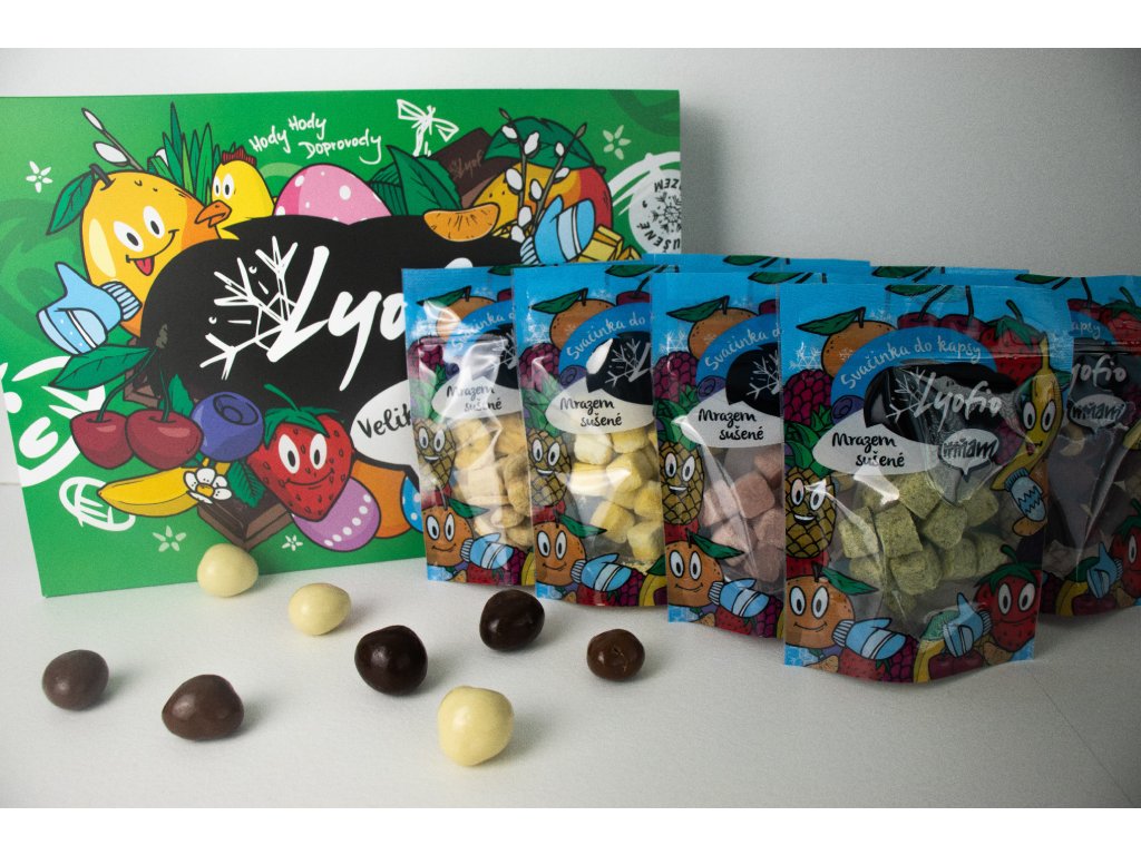 Darujte pořádnou dávku sladkého křupání s boxem plným lyofilizovaných pochoutek. Zdravé mrazem sušené ovoce, nutričně nabité čtverečky z kokosového mléka nebo neokoukaná kombinace kešu a lyo ovoce? Velikonoční balíček obsahuje 8 příchutí, ze kterých si vybere každý. Letošní Velikonoce budou ve znamení křupavého mlsání!