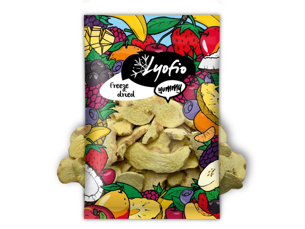 Plátky jsou lehoučké, křupavé a při rozkousnutí se okamžitě rozvoní. Jejich chuť vás nabije energií. Lyofilizovaný zázvor skvěle funguje jako netradiční mlsání pro ty, kteří mají rádi výrazné chutě a neholdují sladkostem.